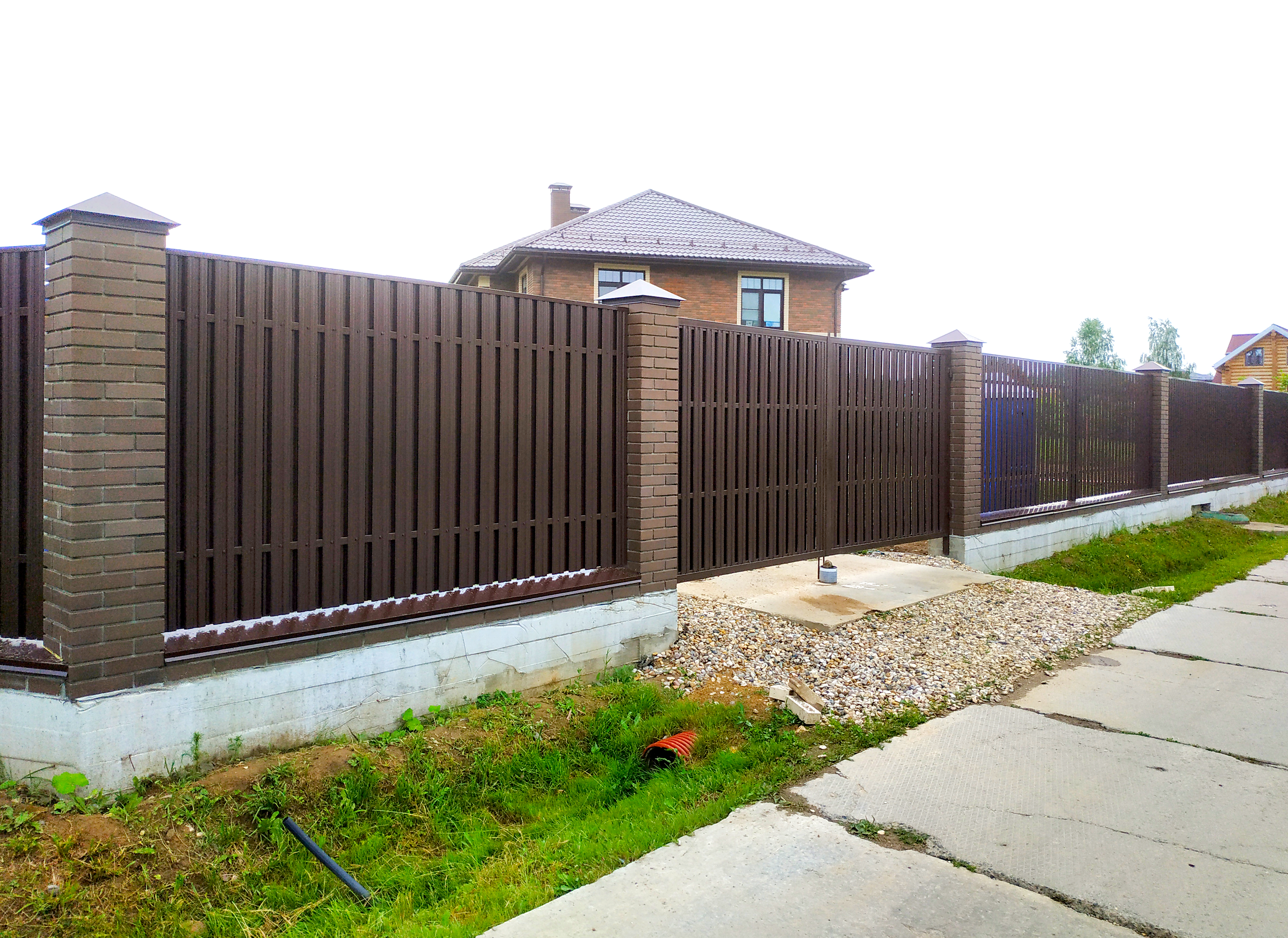 Заборы и ограждения из евроштакетника с кирпичными столбами 100 метров в Шатуре