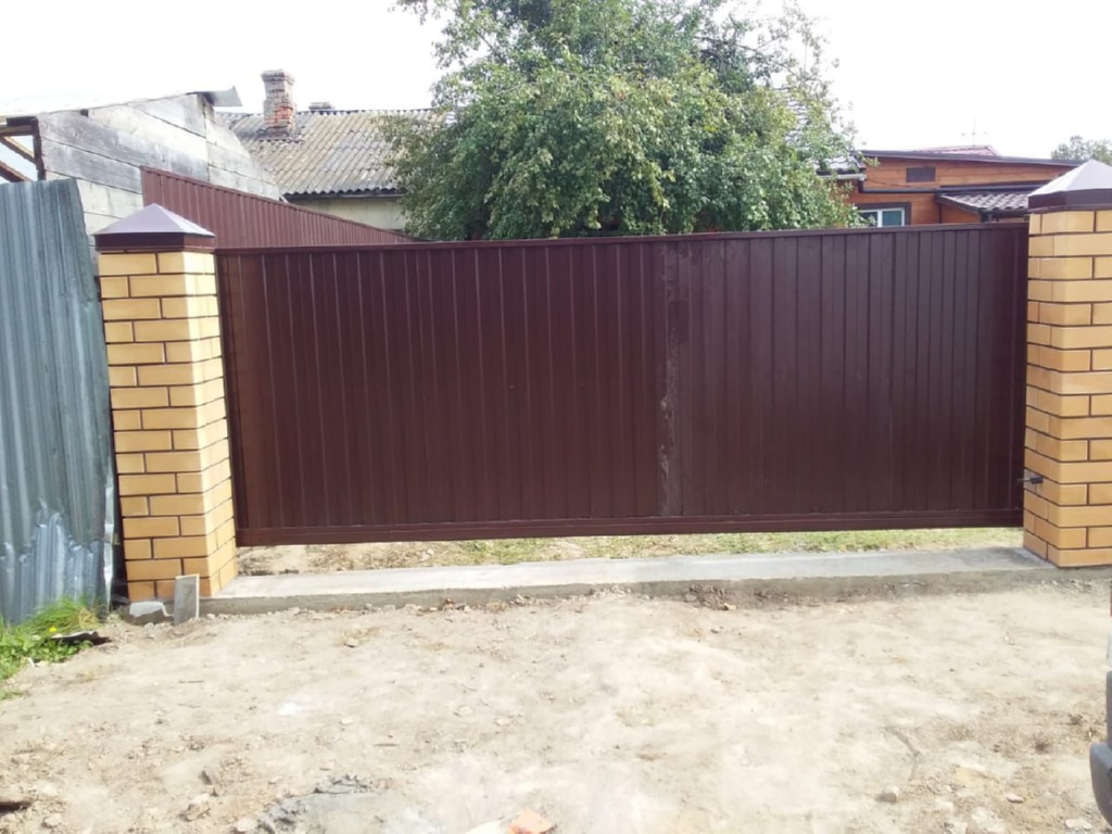 Заборы и ограждения из профнастила с кирпичными столбами 40 метров в Шатуре