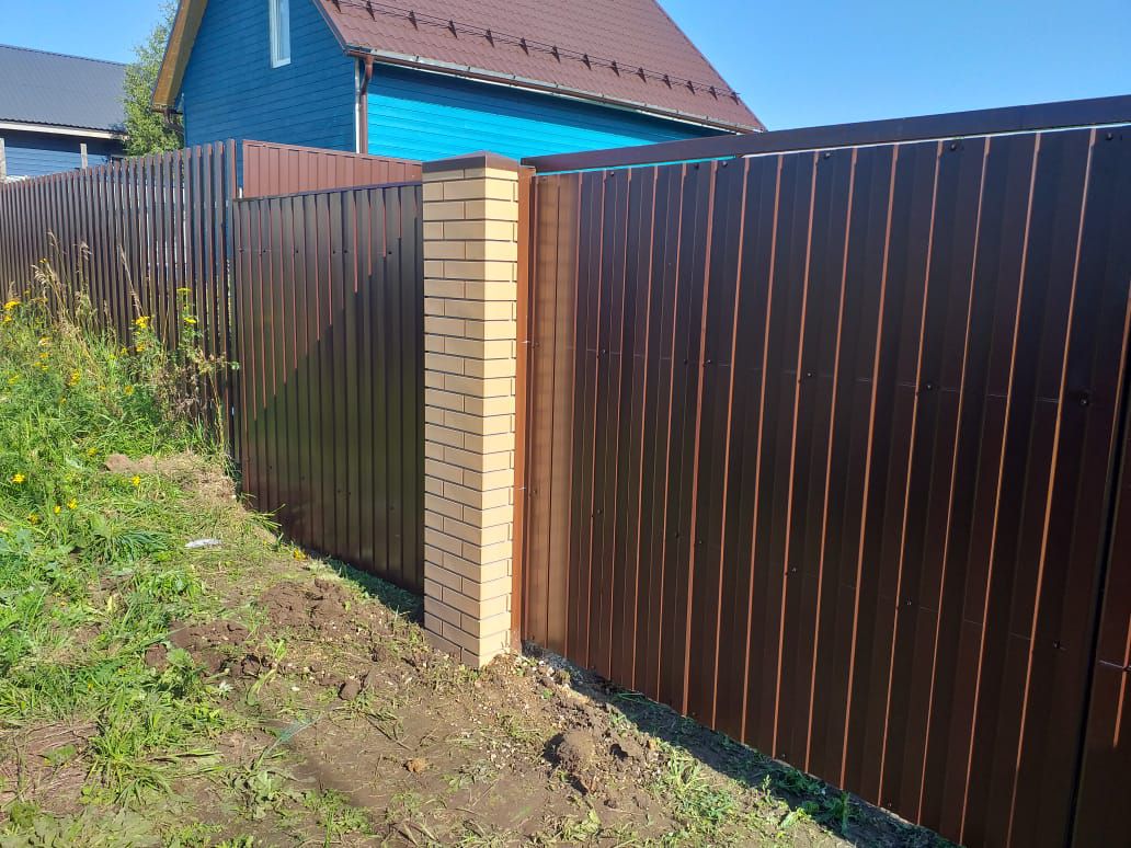 Заборы и ограждения из профнастила с кирпичными столбами 50 метров в Шатуре
