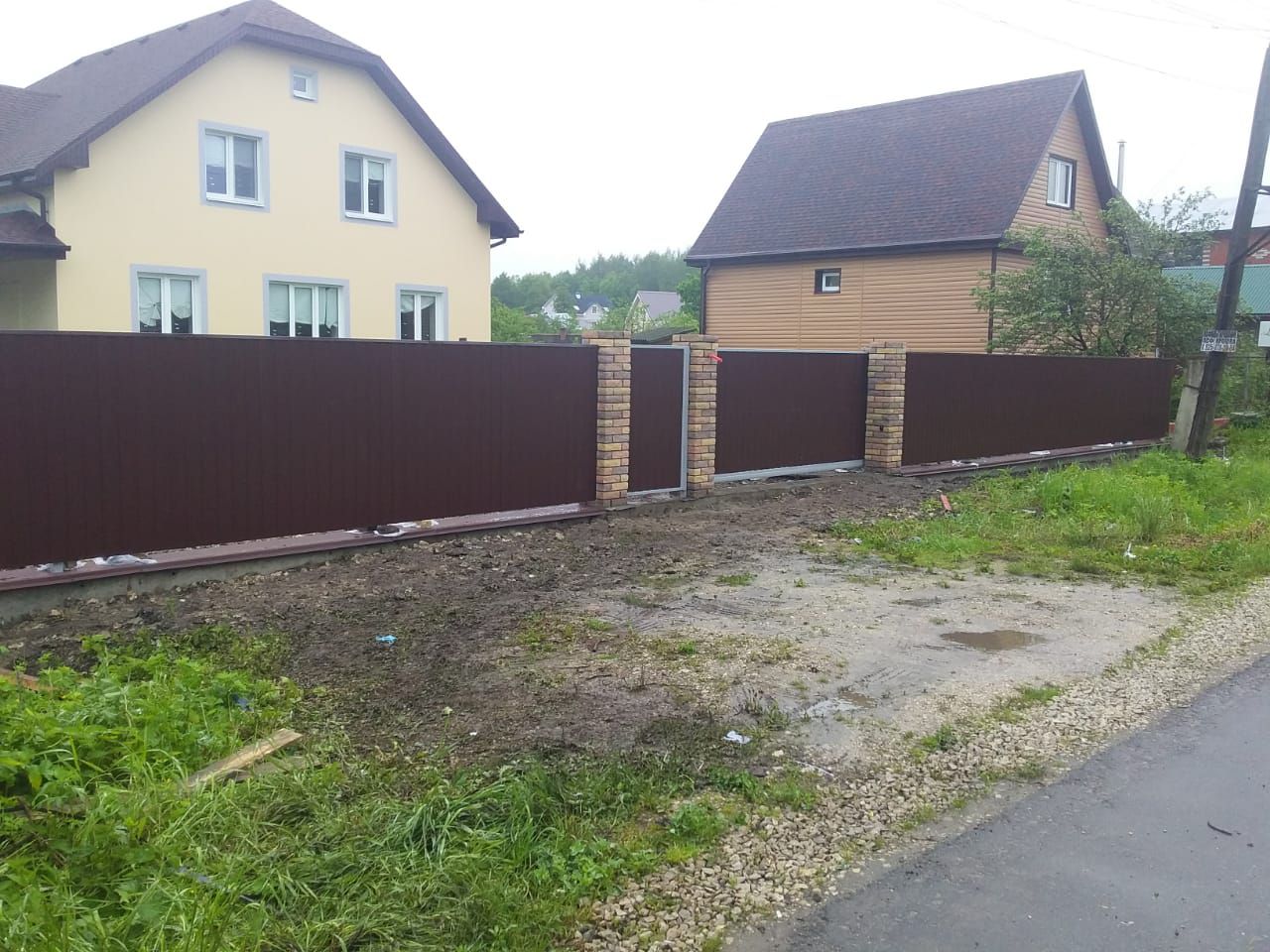 Заборы и ограждения из профнастила с кирпичными столбами 30 соток в Шатуре